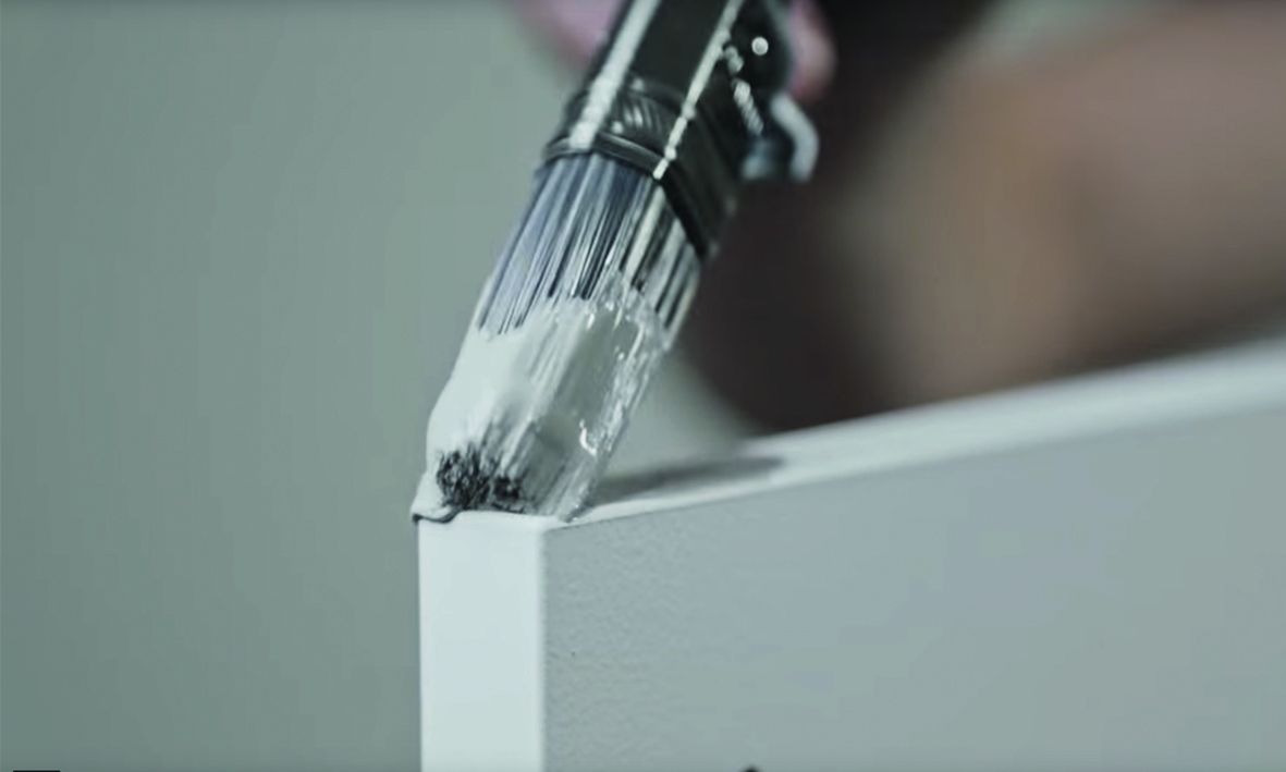 Kuten pohjamaalin kanssa, on parasta käyttää minitelaa suurille alueille. Reunojen, yksityiskohtien ja vaikeammin saavutettavien pintojen kohdalla suosittelemme kuitenkin siveltimen käyttöä. Maalaa kaksi kerrosta ja anna maalin kuivua välissä.