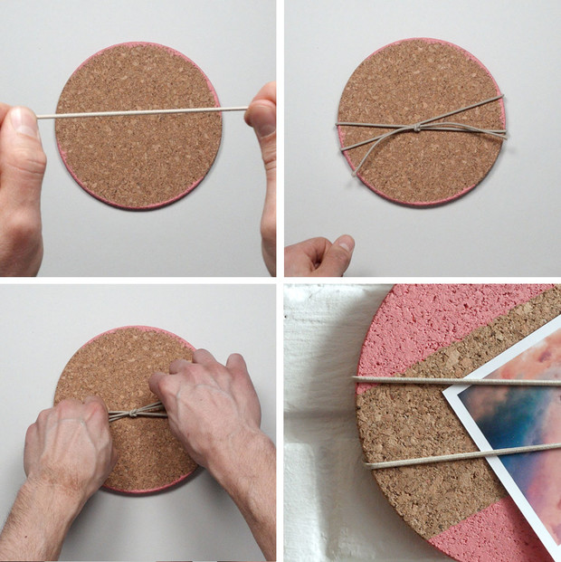 Knyt ett elastiskt snöre runt underlägget och sätt dit dina favoritbilder.